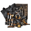 Inhoud Koelshopper van suède PU materiaal, 39 x 14,5 x 35 cm Zwarte kandelaar, 2 ass, Ø 5,7 x 15,5 cm, 2 st Wit kaarsje, Ø 2,15 x 11 cm, 6 st Moldavische rode wijn 47*N Pinot Noir, 75 cl Moldavische witte wijn 47*N Pinot Grigio, 75 cl Steenberge premium pilsener, 25 cl, 2 st Croky Party Stars honey roasted, 80 gram Zoute pinda's, 60 gram Buiteman biscuits sundried tomato, 75 gram Pretzel sticks salt, 40 gram Barritas pipas, 83 gram Mini bruschetta's tomaat/oregano, 100 gram Vijgenbrood, 100 gram Noten/rozijnenmix ongezouten, 100 gram Delicious dip & scoop sea salt crackers, 200 gram Brie, 125 gram Oude kaas, 130 gram Mosterd dille moet je wille!, 100 gram Verpakt in een feestelijke geschenkdoos, 450 x 350 x 230 mm