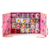 Inhoud The Cocktail advent kalender, bevat 12 paar damessokken elk met een uniek cocktail-ontwerp, maat 36–41 Set van twee tumbler bekers met geribbeld glas, inhoud, 380 ml Flexibele siliconen ijsblokjesvorm, 23,5 x 12 x 1,3 cm Cocktailstampers, 8 st Papieren rietjes, 20 cm Servetten, 33 x 40 cm MIX cocktail cactus wodka & green apple 4%, 33 cl MIX cocktail wodka & wild berry 4%, 33 cl Meringues, 75 gram Verpakt in een feestelijke geschenkdoos, 390 x 290 x 175 mm