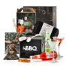Inhoud Eenpersoons BBQ kubus mat zwart, 28 x 17 x 16 cm IJsblokjesvorm crushed ice zwart, 23 x 12 cm Cocktailglas, ø, 11 x 18 cm, 2 st Mojito Le Coq 0,0%, 33 cl Margarita Le Coq 0,0%, 33 cl Winter pretzels, 100 gram Caramel candy, 65 gram Marshmallows BBQ set met houten prikkers, 250 gram Verpakt in een feestelijke geschenkdoos, 390 x 290 x 232 mm