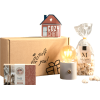 Inhoud Dimbare tafellamp Meringue gezouten karamel, 75 gram Thee selectie 3 smaken Caramel candy, 65 gram Verpakt in een feestelijke geschenkdoos 335 x 187 x 95 mm