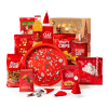 Inhoud Metalen dien/serveerblad met kerstprint, ø, 32 x 1,5 cm Bestekhouder kerstmutsen, 4 st LED raamsticker slinger kerst Schulp appelsap, 75 cl Ribbelchips zout, 90 gram Dunicec maxi brezel salt, 200 gram Gezouten pinda's, 100 gram Popcorn zoet, 100 gram Atlanta cakemix, 400 gram Truffels choco speculaas & karamel, 50 gram Haverkoeken, 135 gram Candy canes, 150 gram Marshmallows, 140 gram Verpakt in een feestelijke geschenkdoos, 390 x 290 x 175 mm